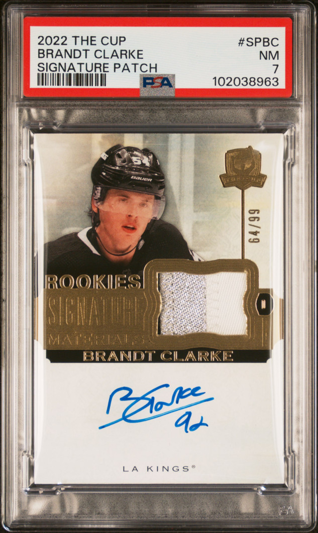 22/23 THE CUP ROOKIE SIGNATURE PATCHES #SP-BC BRANDT CLARKE RC (64/99) PSA 7