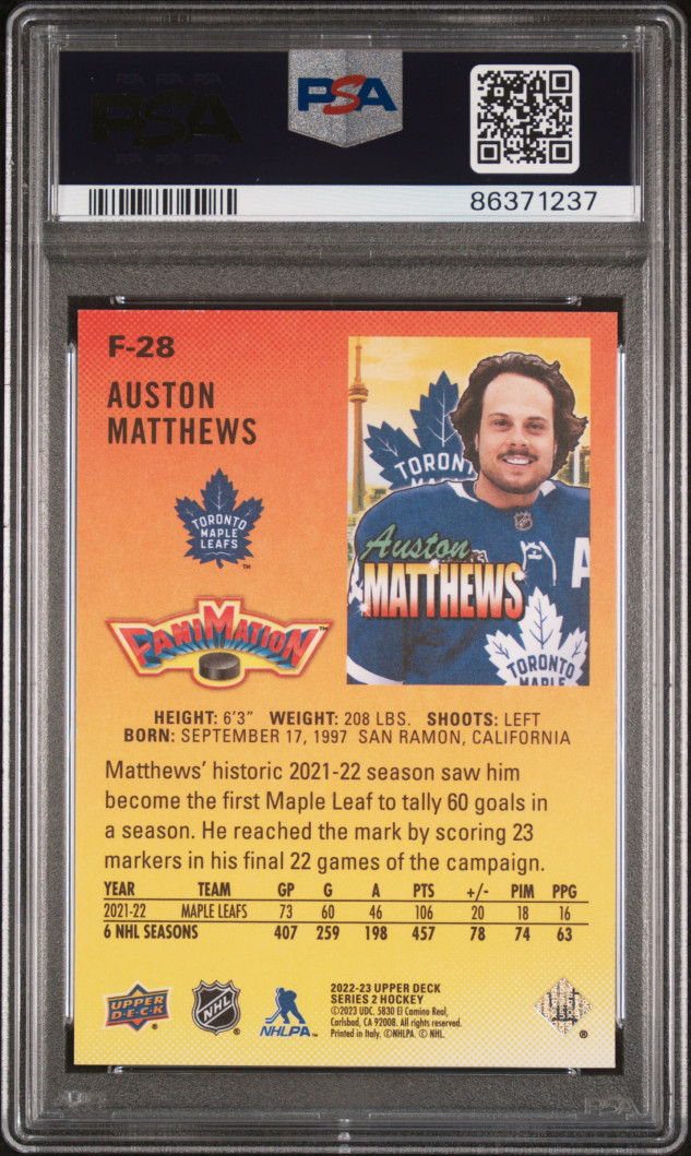 22/23 UD SERIES 2 FANIMATION SP #F-28 AUSTON MATTHEWS PSA 10 - POP 11