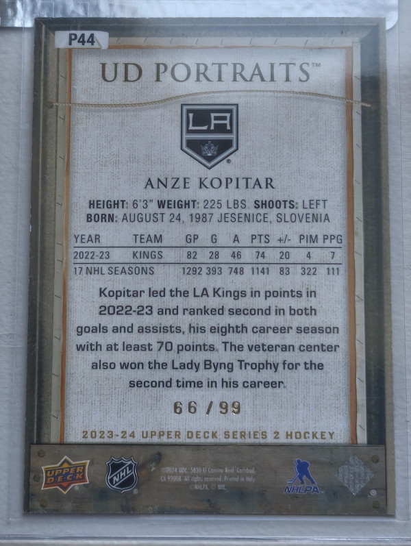 23-24 UD Portraits Anze Kopitar Silver #66/99