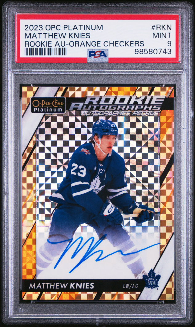 23/24 OPC PLATINUM ORANGE CHECKERS AUTOGRAPH #R-KN MATTHEW KNIES RC (08/15) PSA 9