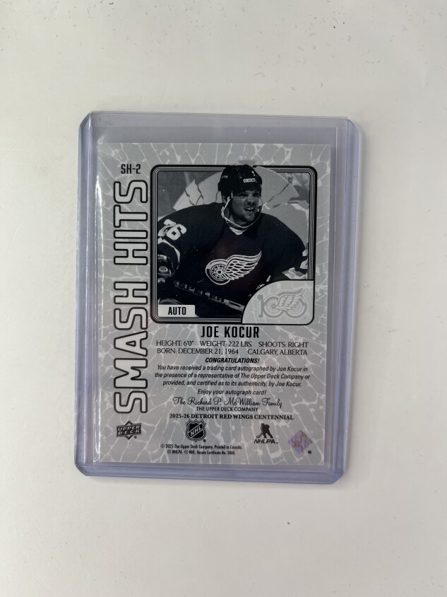 25/26 2025 DETROIT RED WINGS CENTENNIAL JOE KOCUR SH-2 SMASH HITS AUTOGRAPH AUTO