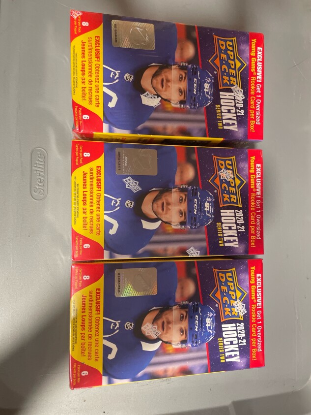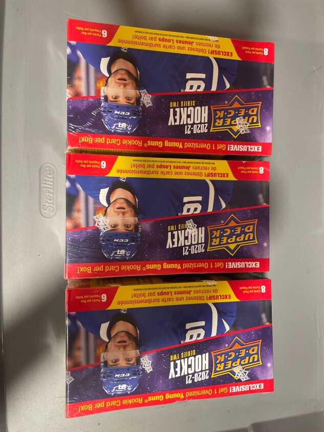 Three factory sealed boxes with (1) Young Guns Jumbo card per box