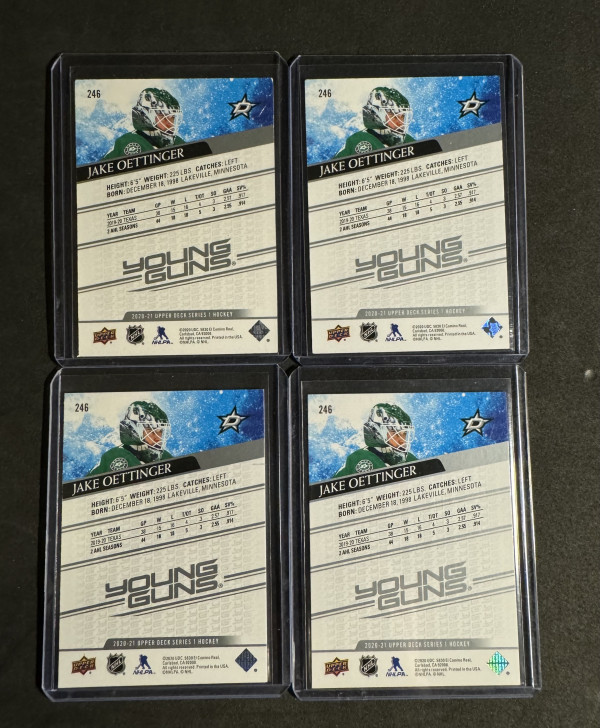 (4) 2020-21 Upper Deck 246 Jake Oettinger Young Guns