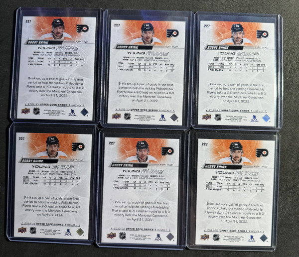 (6) 2022-23 Upper Deck Bobby Brink Young Guns