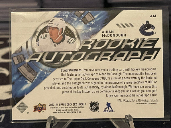 Aidan Mcdonough 23-24 spx rookie Jersey Auto /65