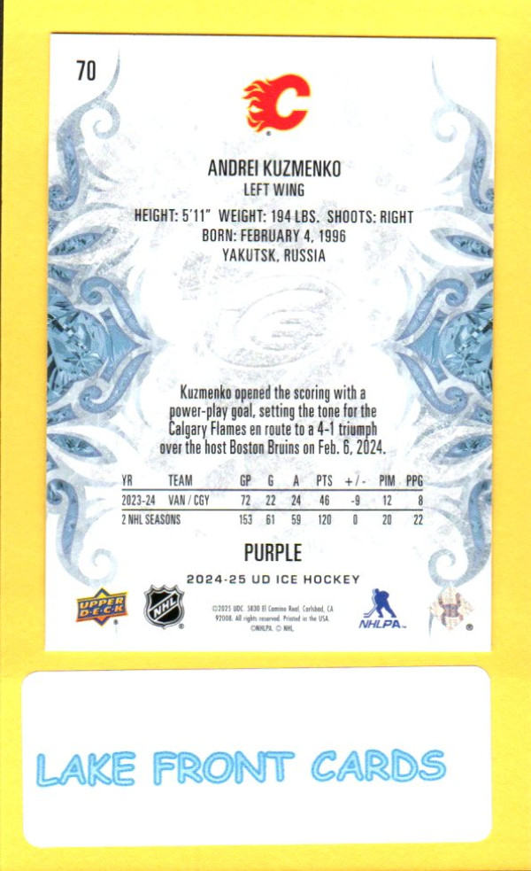 • Purple parallel from the 2024 UD Ice set