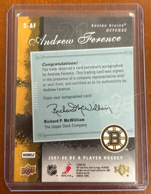 Andrew Ference Autograph Card