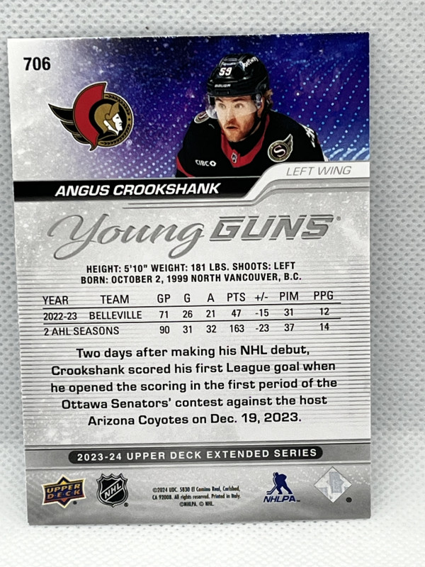 ANGUS CROOKSHANK 2023-24 UD Extended Young Guns #706 OUTBURST SILVER