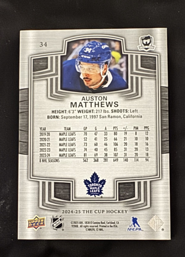 Auston Matthews 2024-25 Upper Deck NHL The Cup /249 #34