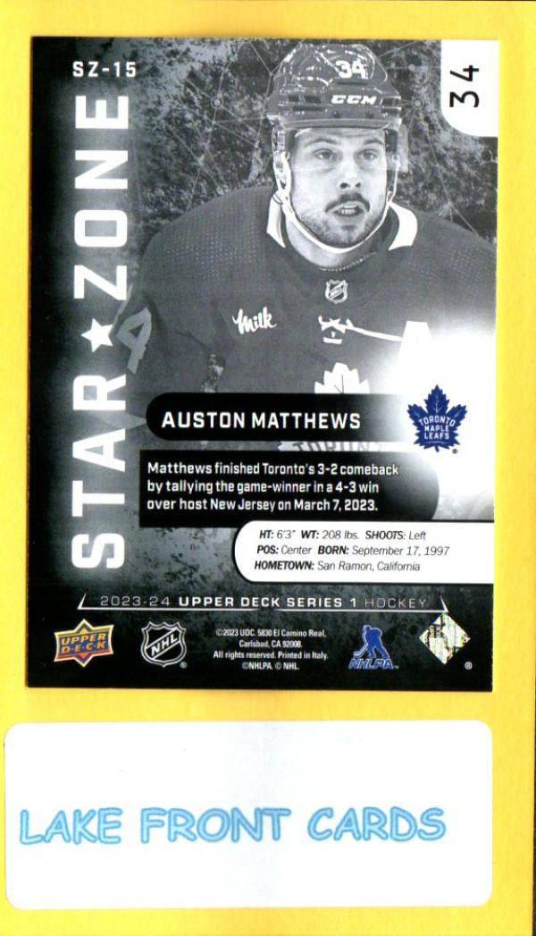 Auston Matthews #SZ-15 2023 Upper Deck Star Zone Toronto Maple Leafs