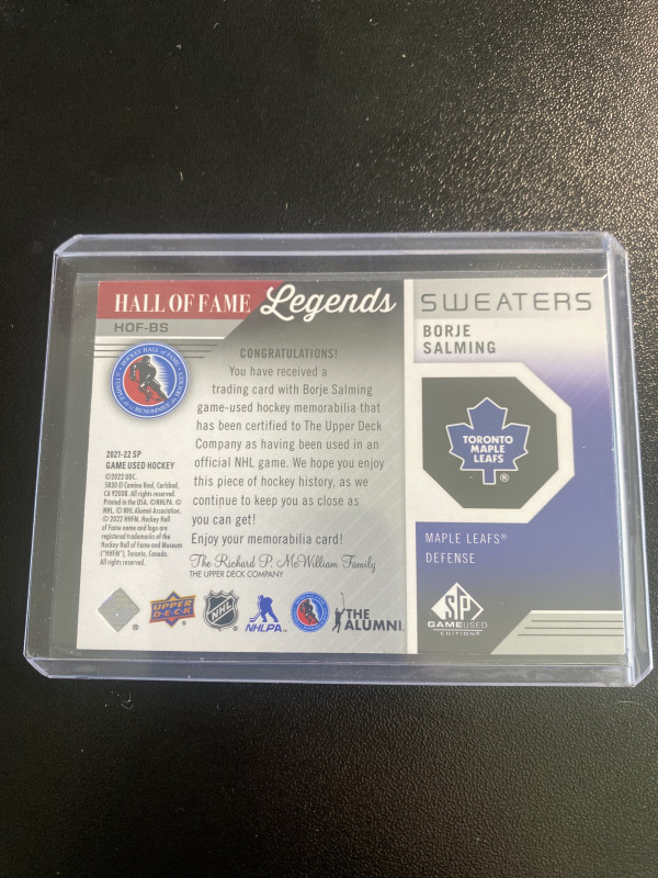 Borje Salming 21-22 SP Game Used Hall of Fame Legends Sweaters