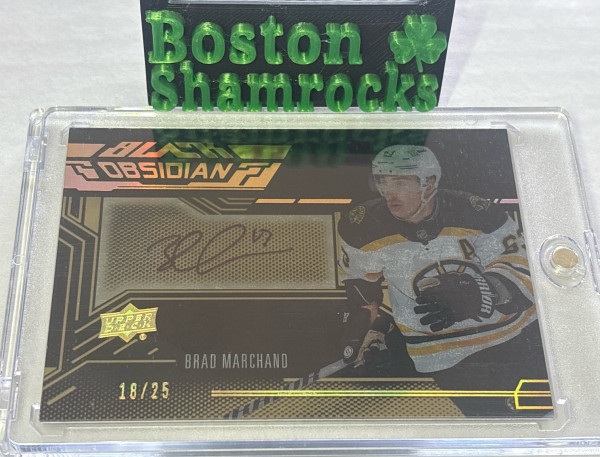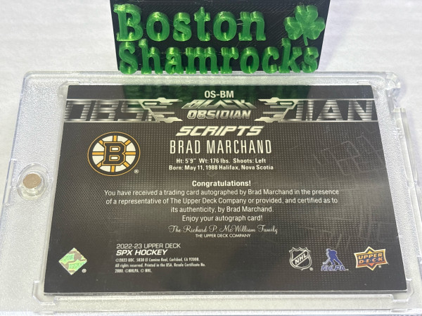 Brad Marchand 2022-23 Upper Deck SPX Black Obsidian Scripts Autograph /25