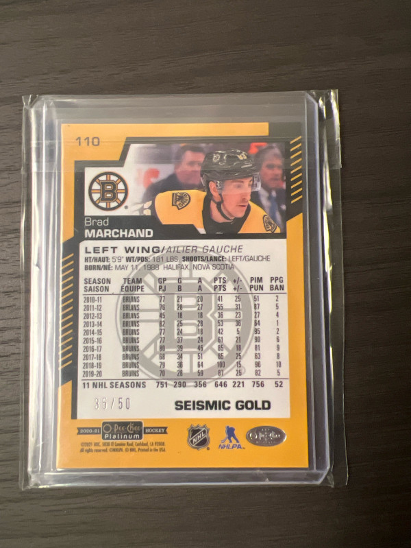 Brad Marchand 2020-21 OPC Platinum Seismic Gold # 35/50