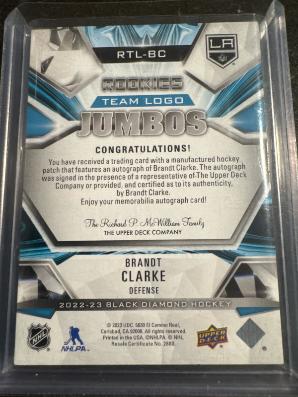 Brandt Clarke black diamond rookie team logo jumbos auto /25