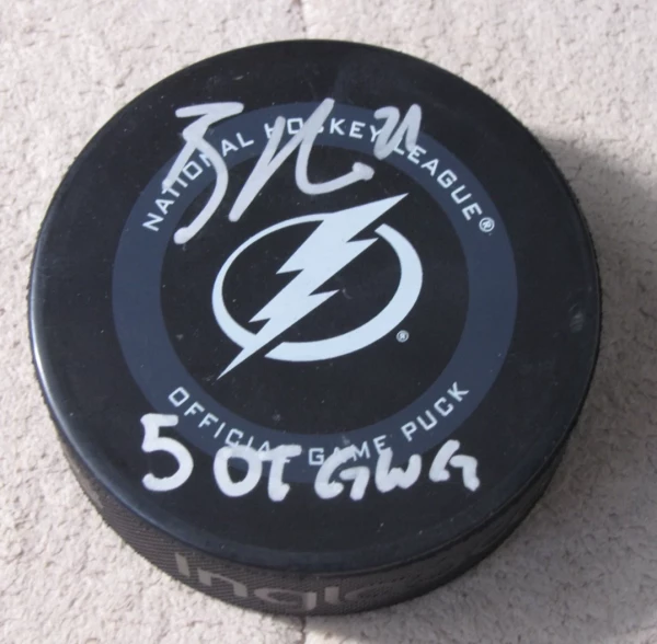 Brayden Point Signed Autographed NHL Puck Inscribed "5 OT GWG" Fanatics Authenticated