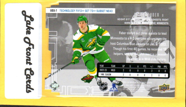 Brock Faber #UD3-7 – 2023 Upper Deck UD3