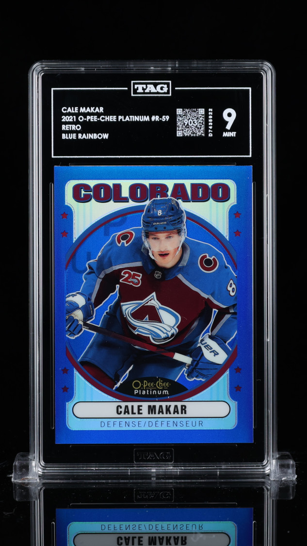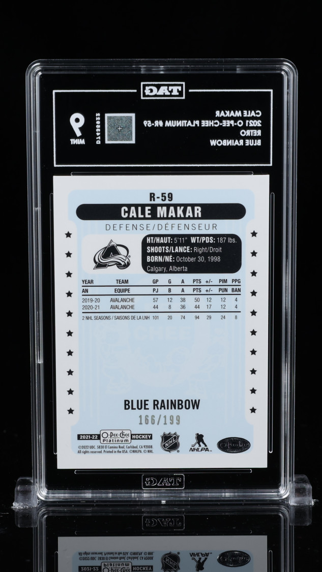 Cale Makar 2021 O-Pee-Chee Platinum Retro #R-59 Blue Rainbow