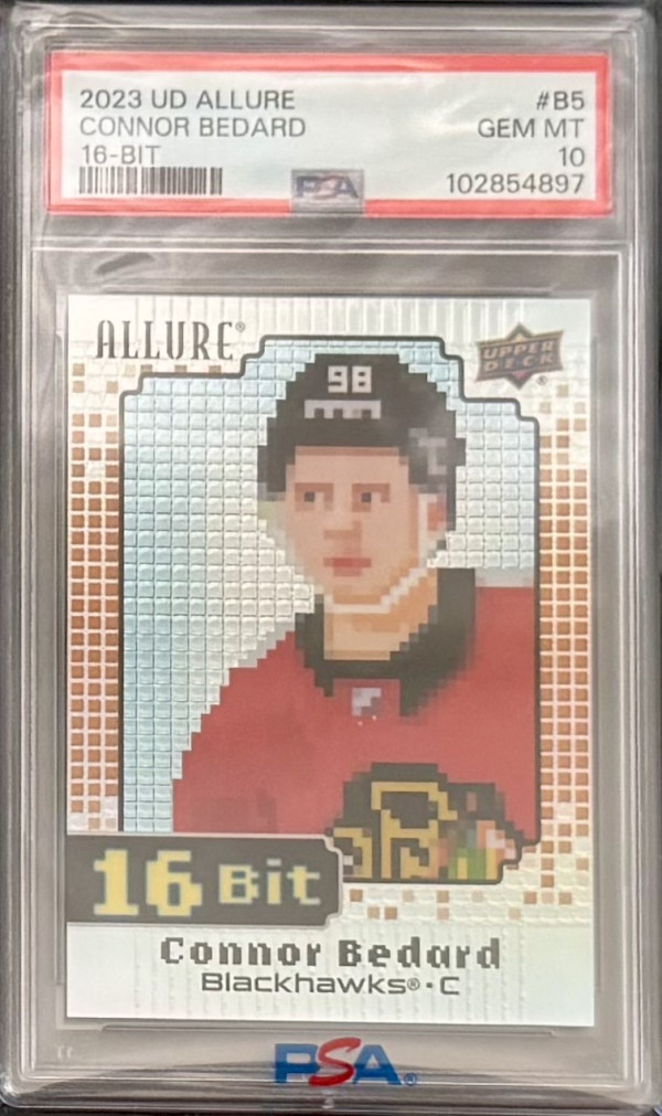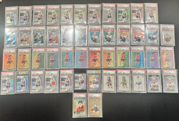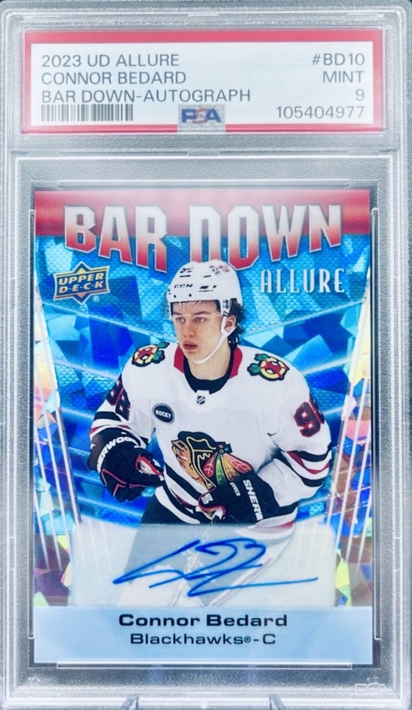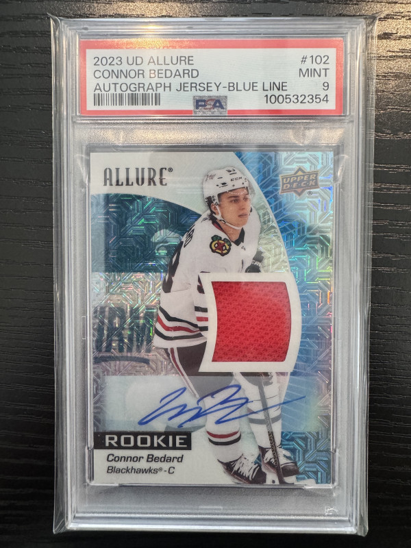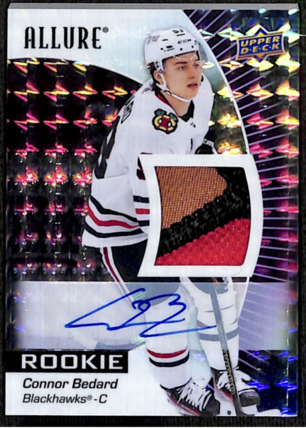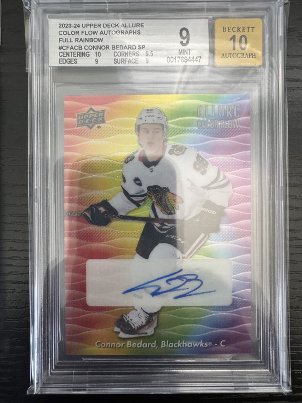 Connor Bedard 23-24 Allure Rookie Set trading card. Almost the complete checklist besides the 1/1s (though there are several 1/1 printing plates included that have all been authenticated)! This unique set is one of a kind, making it a valuable addition to any sports trading card collection. It cannot be duplicated!!! And with his bright future ahead this could potentially be an extremely valuable set in the future! If you are interested please message me for further details. Platform user name: Elitestatus
