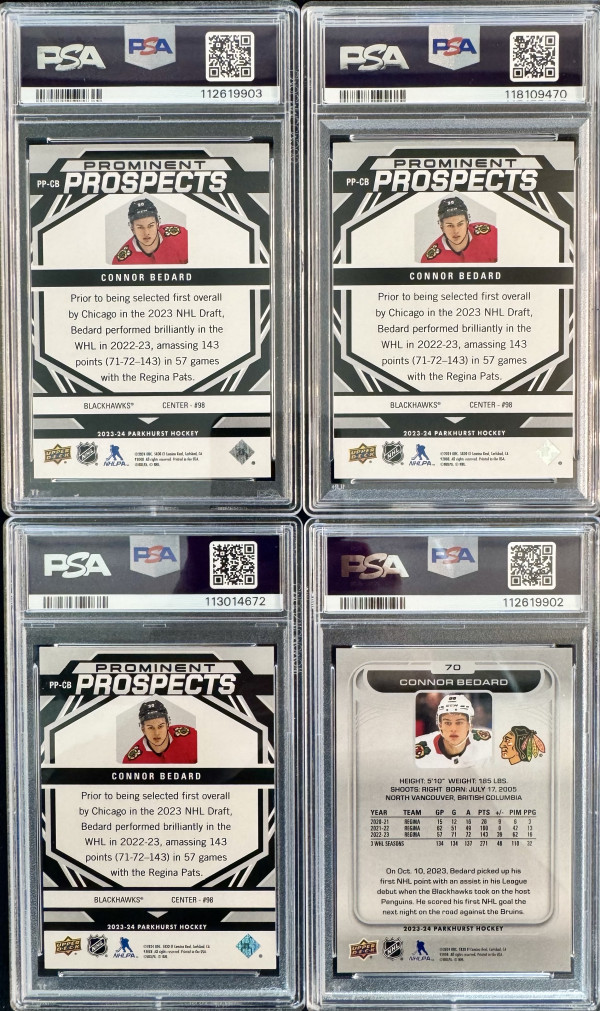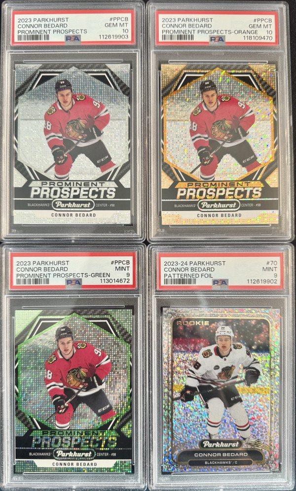 Connor Bedard Parkhurst Rainbow Rookie Lot Awesome looking cards all graded a PSA 9 or higher!