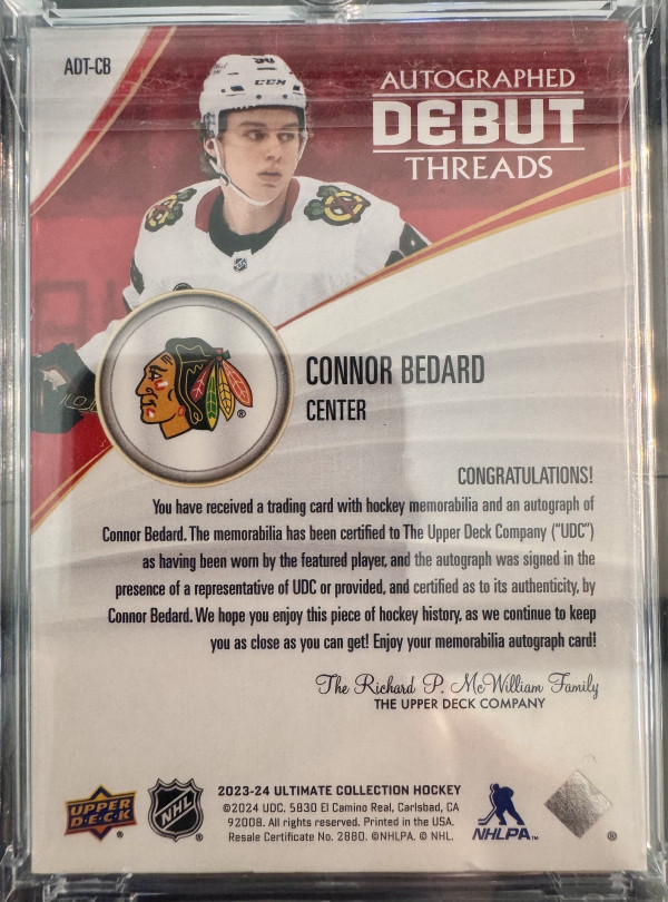 Connor bedard ultimate debut patch auto /25 🔥🏒