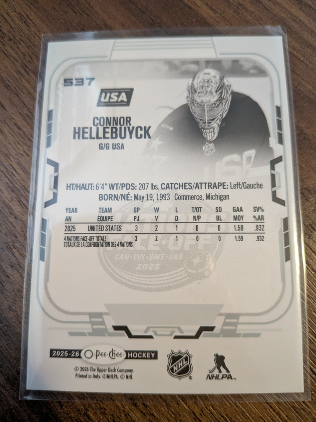 Connor Hellebuyck 4 Nations Face-off OPC O-pee-Chee 2025-26
