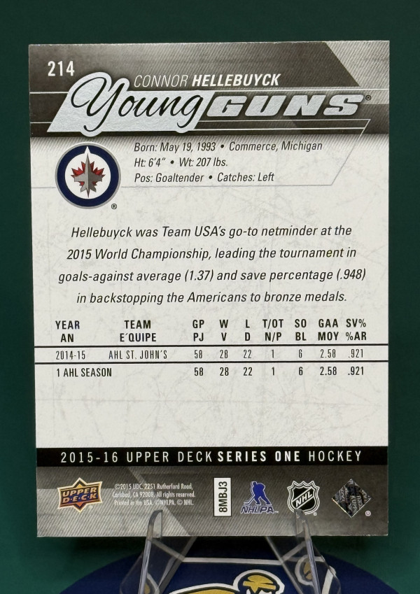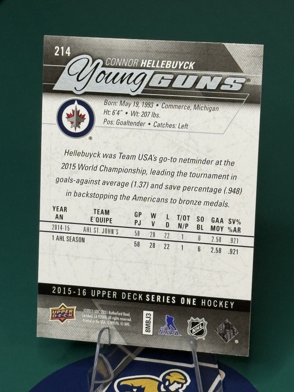 Connor Hellebuyck Young Guns in raw condition as pictured.