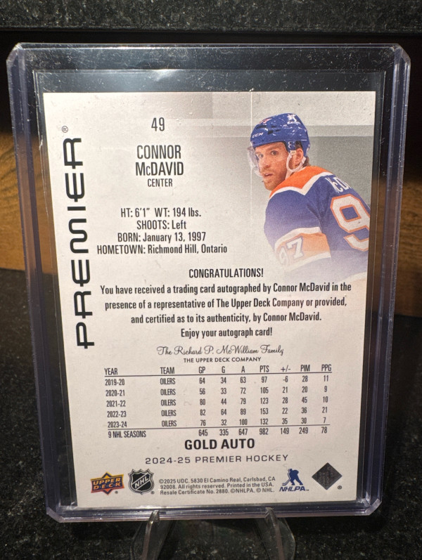 Connor McDavid #49 Gold Auto /25 Premier 24-25