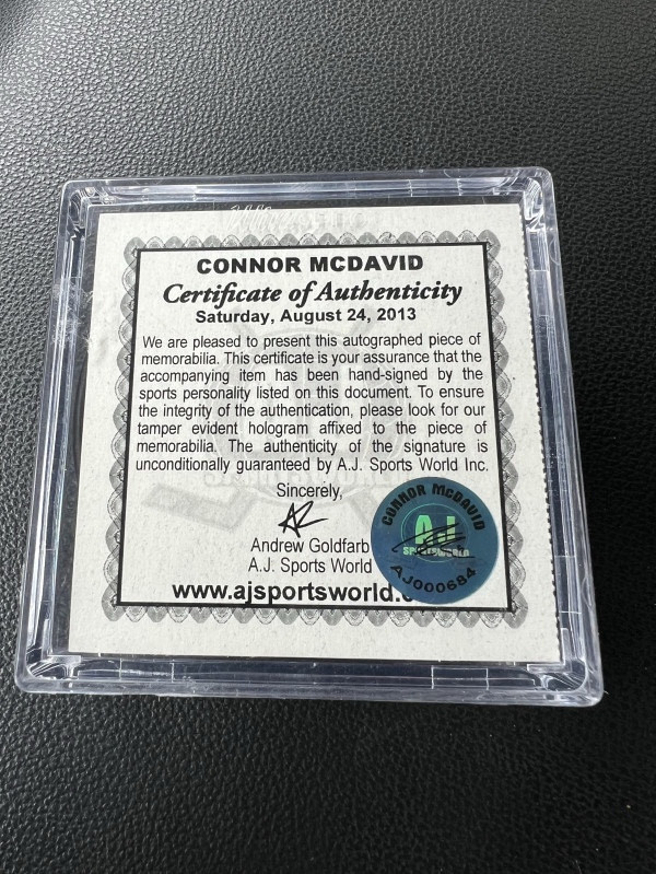 Connor McDavid Team Canada World Juniors Autographed Puck