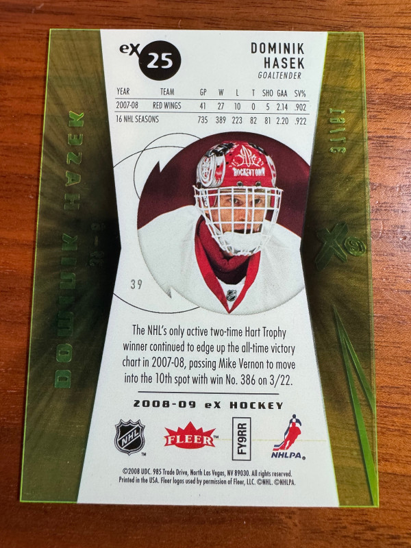 DOMINIK HASEK - 2008 Fleer EX Hockey #25, /61