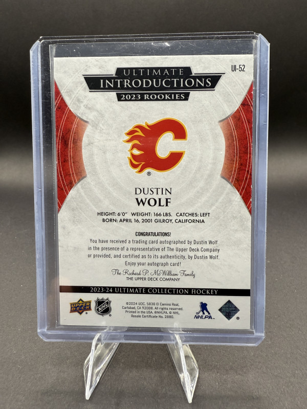 Dustin Wolf Rookie Ultimate Introductions /25 Auto