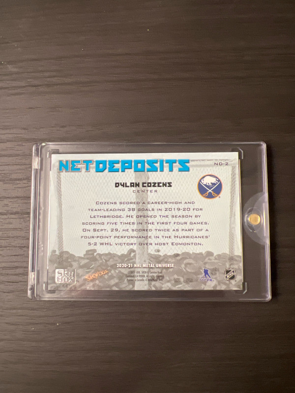 Dylan Cozens 2020 Metal Universe Net Deposits Gold rookie jersey number # 24/25 beautiful card