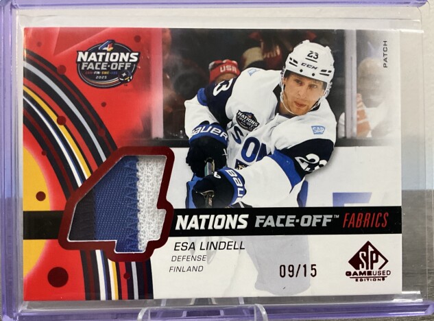 2024-25 SP Game Used 4 Nations Face Off Fabrics Patch Esa Lindell 4N-LI 09/15