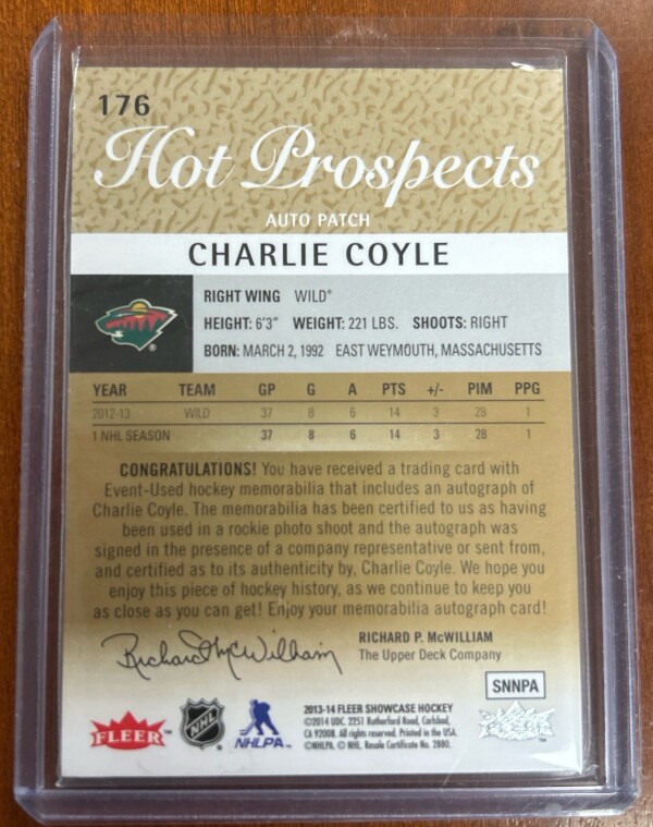 Fleer Showcase Charlie Coyle Rookie Patch Auto 358/375