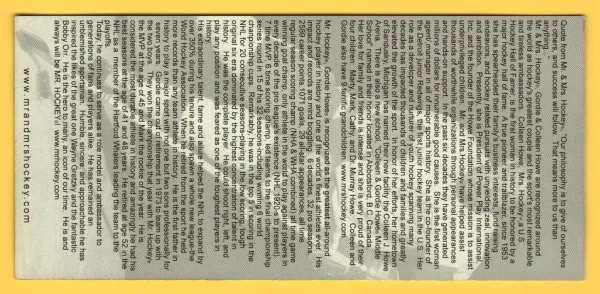 Gordie Howe Signed Autographed Mr & Mrs Hockey Card 7 1/2" x 3 1/2"
