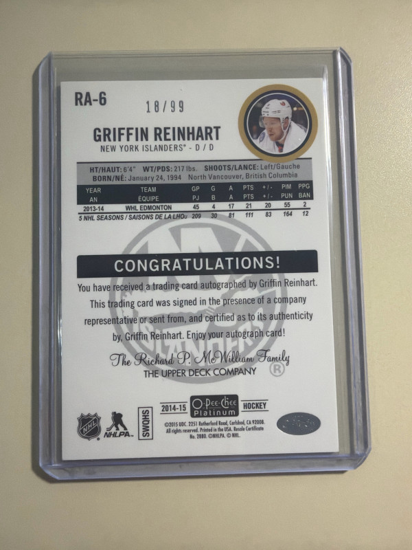 Griffin Reinhart 14-15 OPC Platinum Black Ice Auto /99