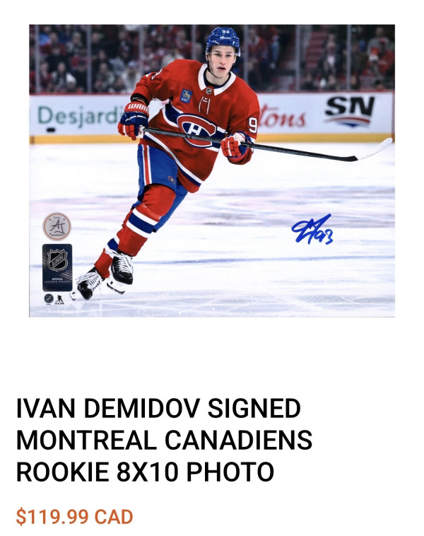 Ivan Demidov Signed Montreal Canadiens Rookie 8x10 Photo