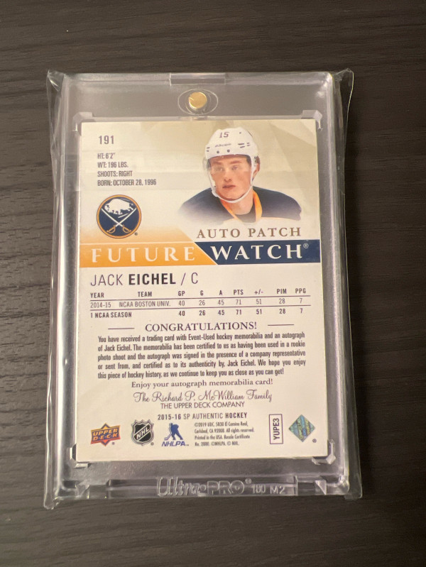 Jack Eichel 2015-16 SP Authentic Future Watch Auto Patch # 75/100