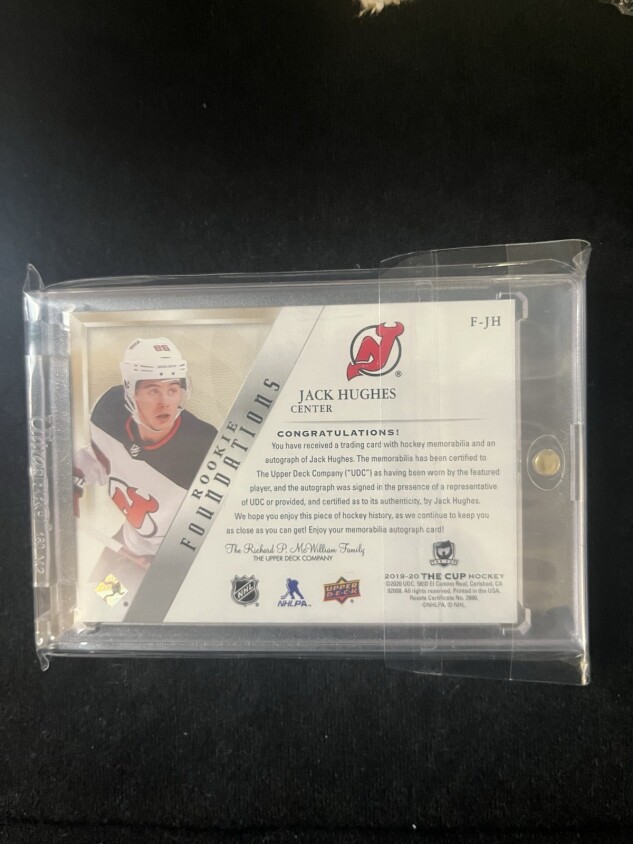 You are purchasing a 2019-20 Upper Deck The Cup Jack Hughes #29 ROOKIE JERSEY AUTO Short Print. You will receive the exact item in the photographs. Thank you for looking.