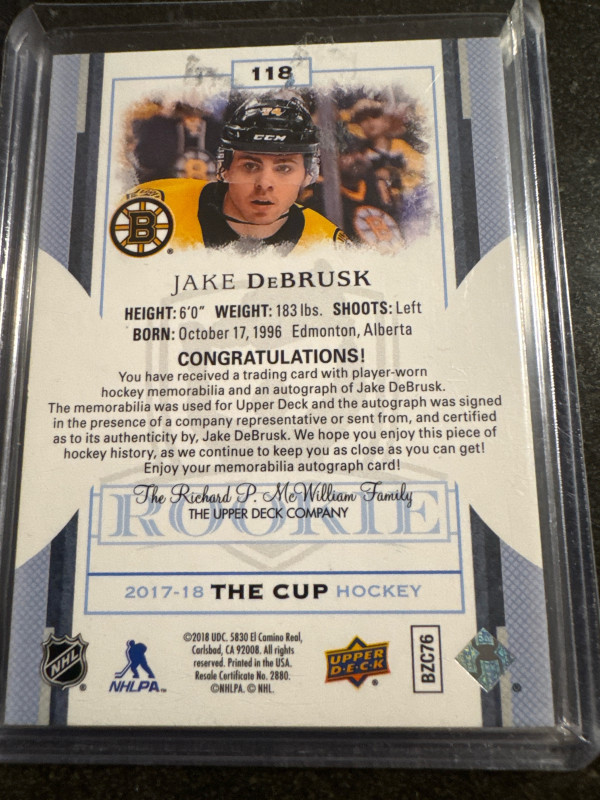 Jake debrusk cup rookie tag auto /8