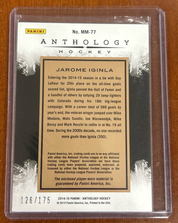 Jarome Iginla Panini Anthology Jersey Card 126/175