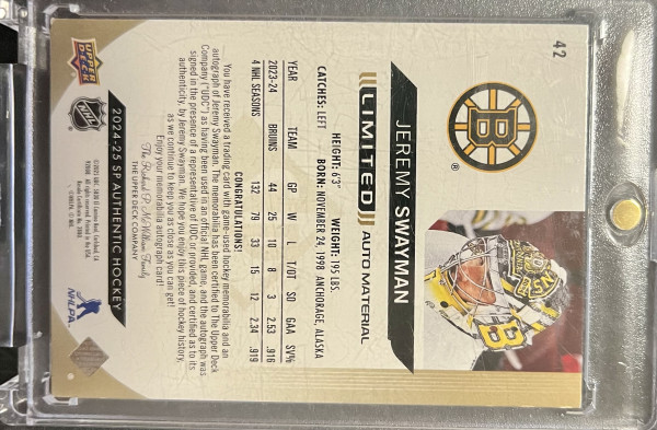 Jeremy Swayman – Limited Auto Material /5