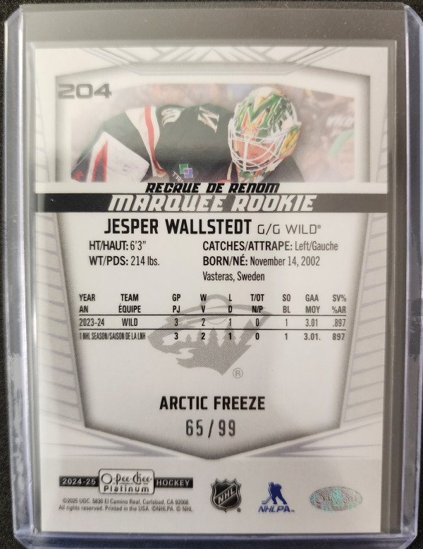 Jesper Wallstedt O-Pee-Chee Platinum Arctic Freeze /99