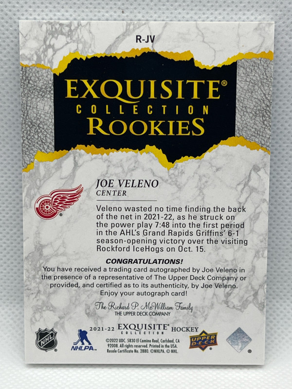 ON CARD AUTO. JOE VELENO 2021-22 Exquisite Collection #R-JV Auto 86-99
