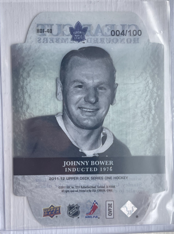 Johnny Bower 11-12 Upper Deck Clear Cut Honored Members 004/100 Toronto Maple Leafs Legend