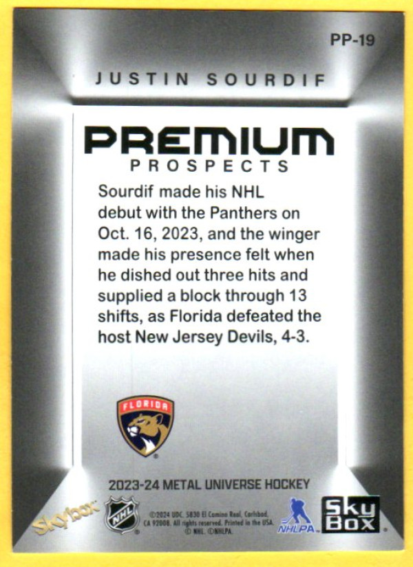Justin Sourdif #PP-19 2023 SkyBox Metal Universe Premium Prospects