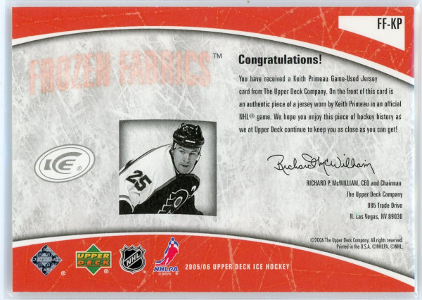 Keith Primeau 2005-06 Upper Deck Ice Frozen Fabrics #FF-KP