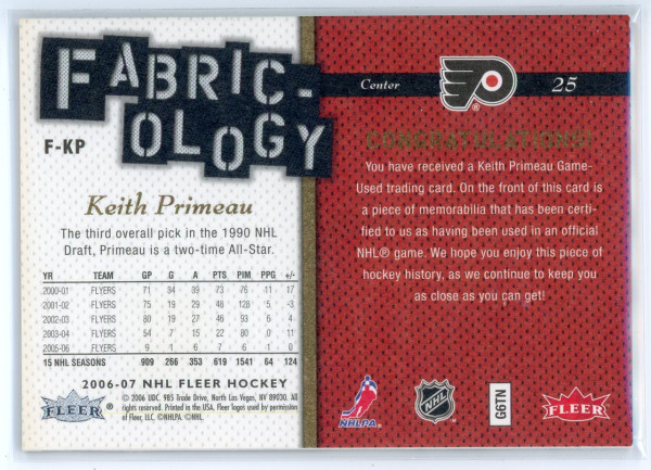 Keith Primeau 2006-07 Fleer Fabricology #F-KP