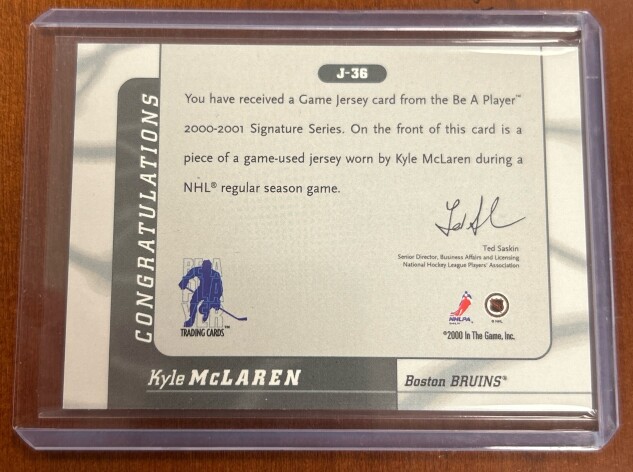 Kyle McLaren Jersey Card 1/1