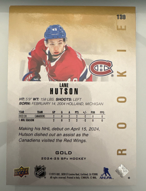 Lane Hutson, 2024-25 SPx, Rookies, Gold