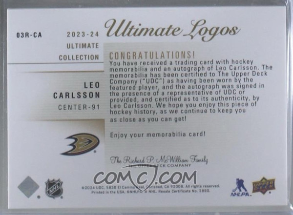 Leo Carlsson 23-24 Ultimate Rookie Patch Auto /49